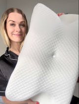 • Je ne peux plus dormir avec un oreiller classique. Ma nuque se retrouve toujours dans une position douloureuse et le lendemain est une vraie galère. J'aime dormir avec le bras près du visage et cet oreiller est génial pour ça. Je n'ai presque plus mal au cou et j'en suis ravie.