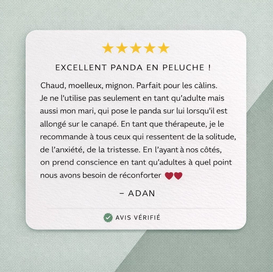 J'ai acheté le panda pour mon fils qui est de nature anxieuse, et l'effet est magique. Il est beaucoup plus calme pendant ses devoirs et le garde sur ses genoux tout le temps.