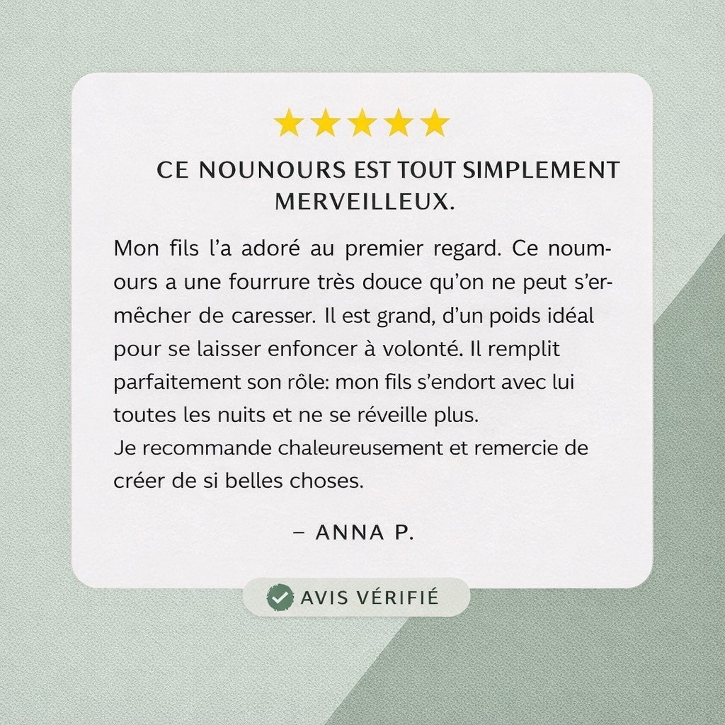Chaque système nerveux réagit différemment. Certaines personnes ressentent un soulagement immédiat, tandis que d'autres ont besoin de plusieurs utilisations pour en constater les effets. Quel que soit votre rythme, nos peluches™ vous accompagne durablement, prêt à vous soutenir lorsque vous en avez le plus besoin.