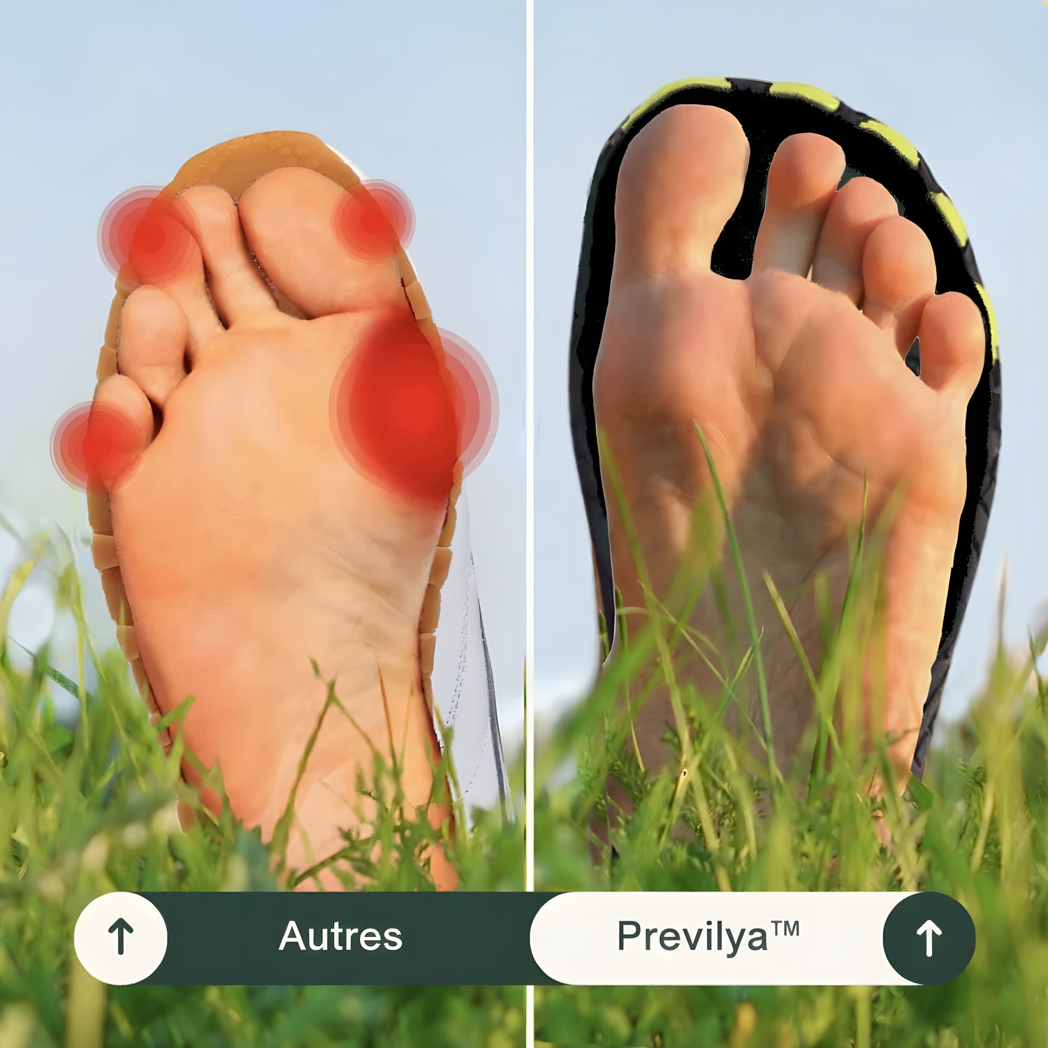 Les chaussures Previlya™ sont conçues pour accompagner les mouvements naturels de vos pieds. Contrairement aux chaussures traditionnelles qui compriment et provoquent des douleurs, les chaussures Previlya™ s'adaptent à chaque pas, vous offrant la liberté et le soutien nécessaires pour courir, randonner ou simplement vous promener. L'avant-pied large assure un confort optimal à vos orteils, améliorant ainsi la stabilité et la santé de vos pieds . Marchez sans douleur et découvrez un confort absolu avec Previlya™ !